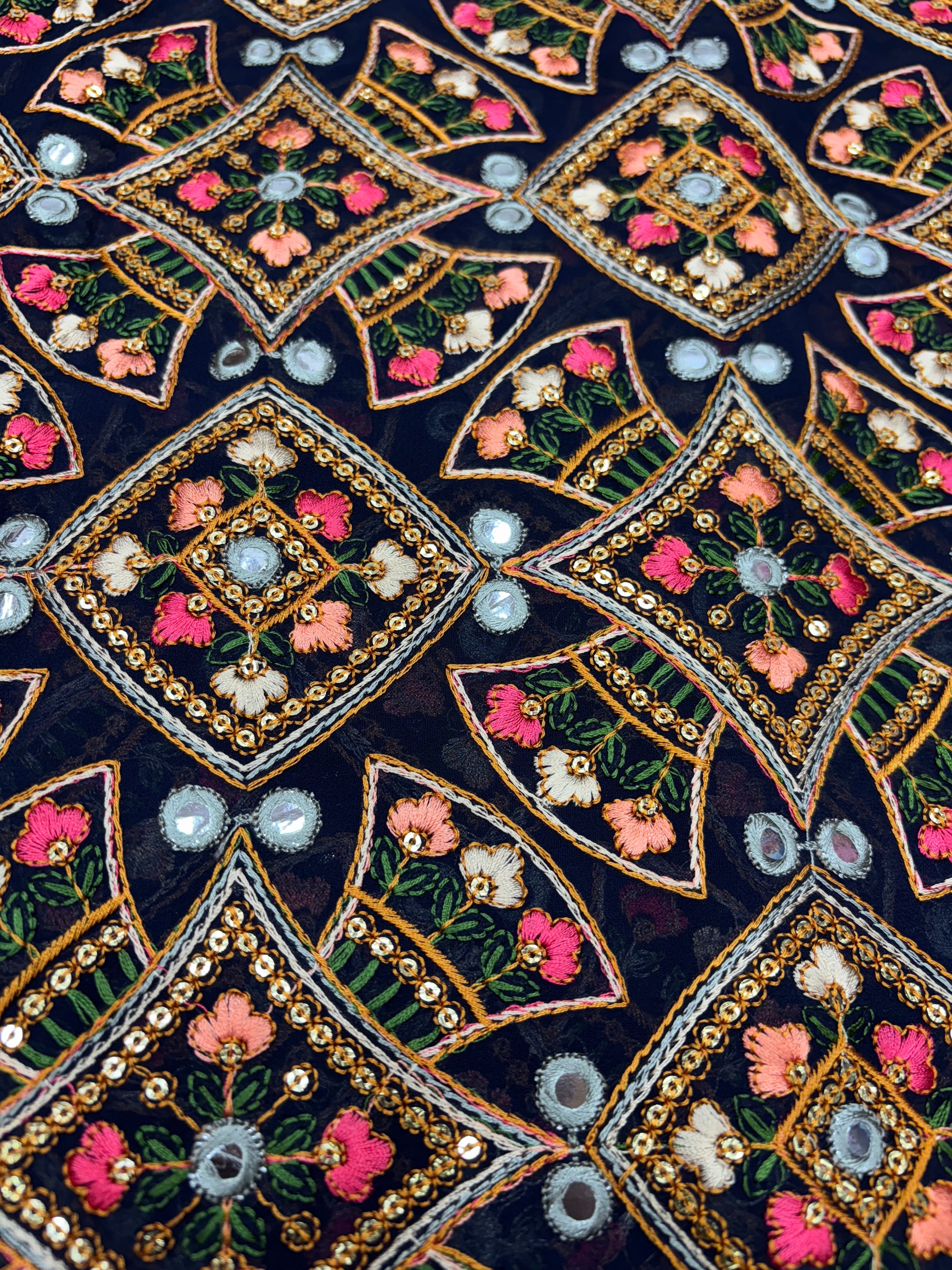 Midnight Mirage Embroidery (Gorjet with Gujrati Work)