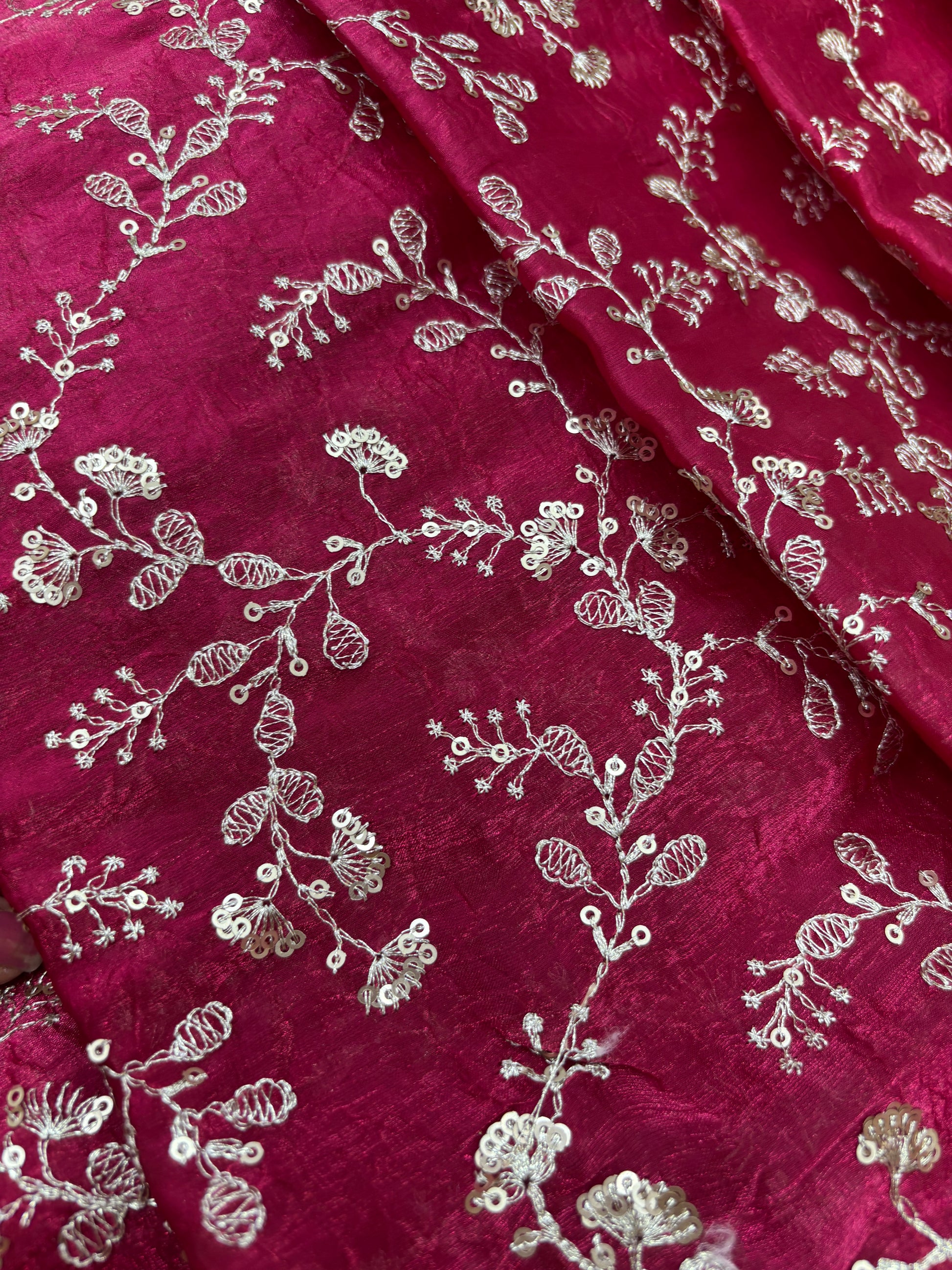Rasberry Vine Zari Embroidery (Glass tissue with Zari Work)